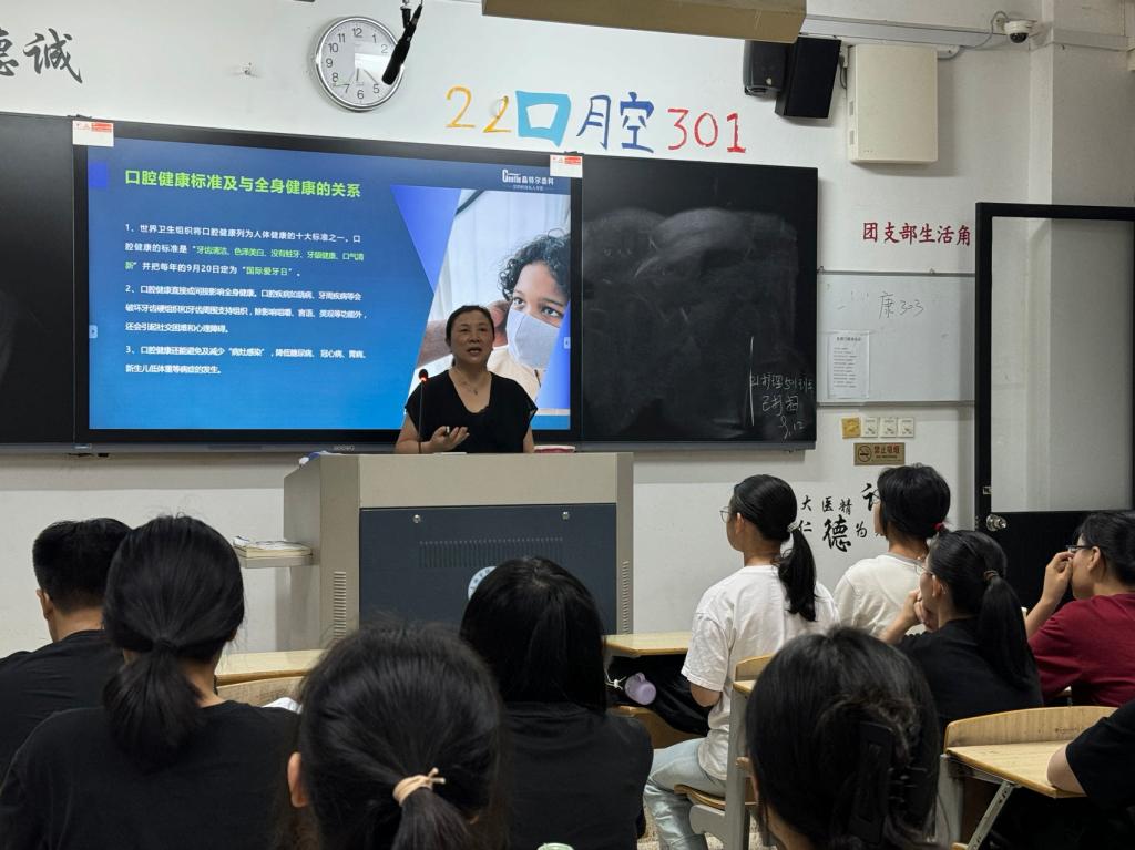 為強(qiáng)化校企聯(lián)動(dòng),深化產(chǎn)教融合,提升人才培養(yǎng)質(zhì)量,9月12日,醫(yī)學(xué)院教師第一黨支部攜手晶特爾齒科黨支部在校內(nèi)開展“全國(guó)第36個(gè)愛牙日9.20”科普宣講活動(dòng)。晶特爾齒科黨支部書記、護(hù)理部主任顏玲珠、代慧院長(zhǎng)和張曉慧助理分別為23口腔學(xué)子們帶來了題為《預(yù)防大于治療》和《美麗人生,從“齒”開始》口腔科普講座。