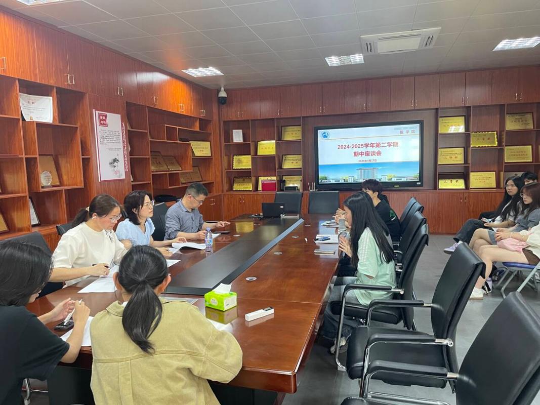 醫(yī)學(xué)院于2025年4月18日在篤行樓311會議室召開期中座談會。學(xué)校質(zhì)量管理辦公室副主任李燕平,醫(yī)學(xué)院院長鄧元榮、副院長劉能英以及各班學(xué)習(xí)委員參加此次會議。