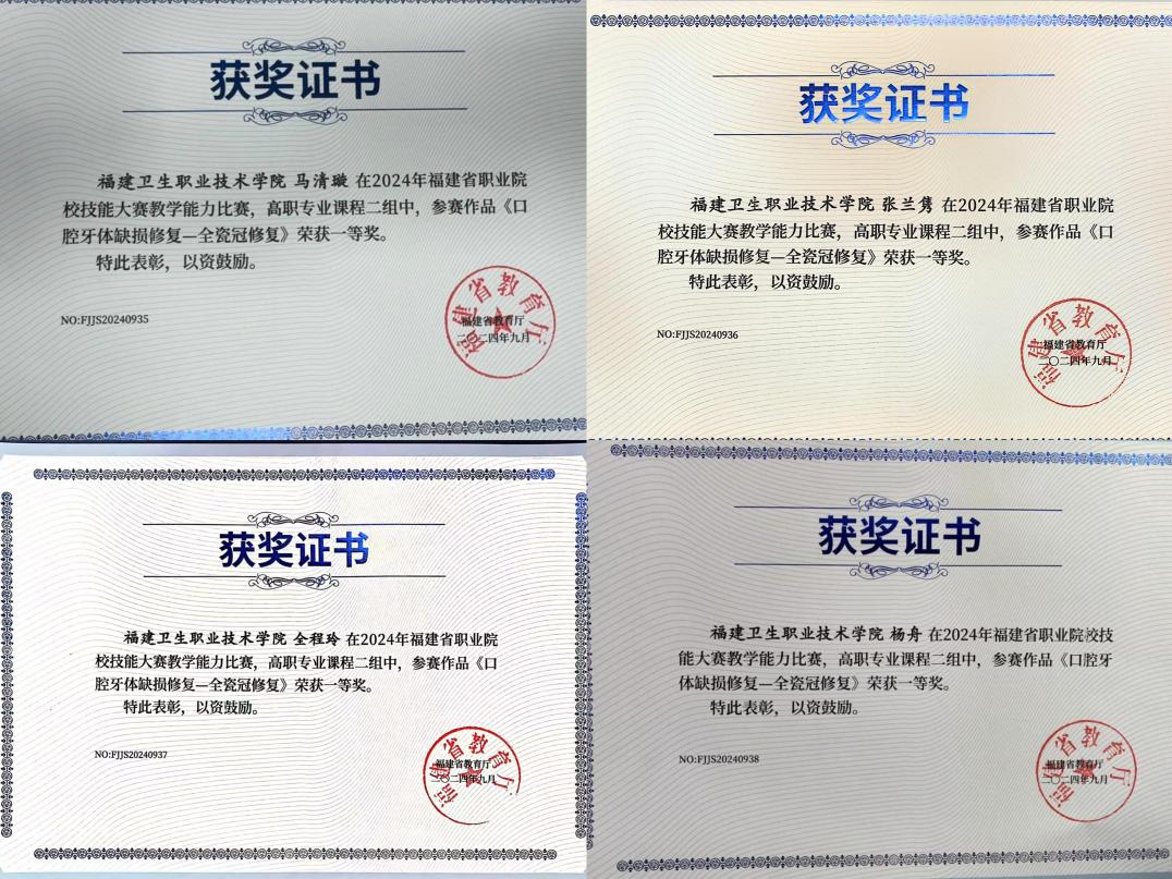 牙體雕刻銀獎(jiǎng) 一等獎(jiǎng)1項(xiàng) 一等獎(jiǎng)1項(xiàng) |