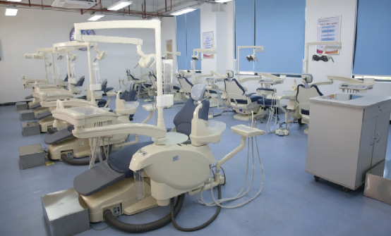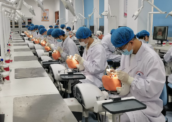校內(nèi)實(shí)訓(xùn)基地面積達(dá)700㎡,包含口腔綜合實(shí)訓(xùn)室、口腔模擬診室、口腔修復(fù)工藝室及門(mén)診部口腔科等,擁有100套對(duì)接臨床的仿頭模教學(xué)系統(tǒng),教學(xué)設(shè)備總值為800多萬(wàn)元,為學(xué)生開(kāi)展各項(xiàng)實(shí)訓(xùn)對(duì)接口腔臨床工作任務(wù)提供堅(jiān)實(shí)的基礎(chǔ)。