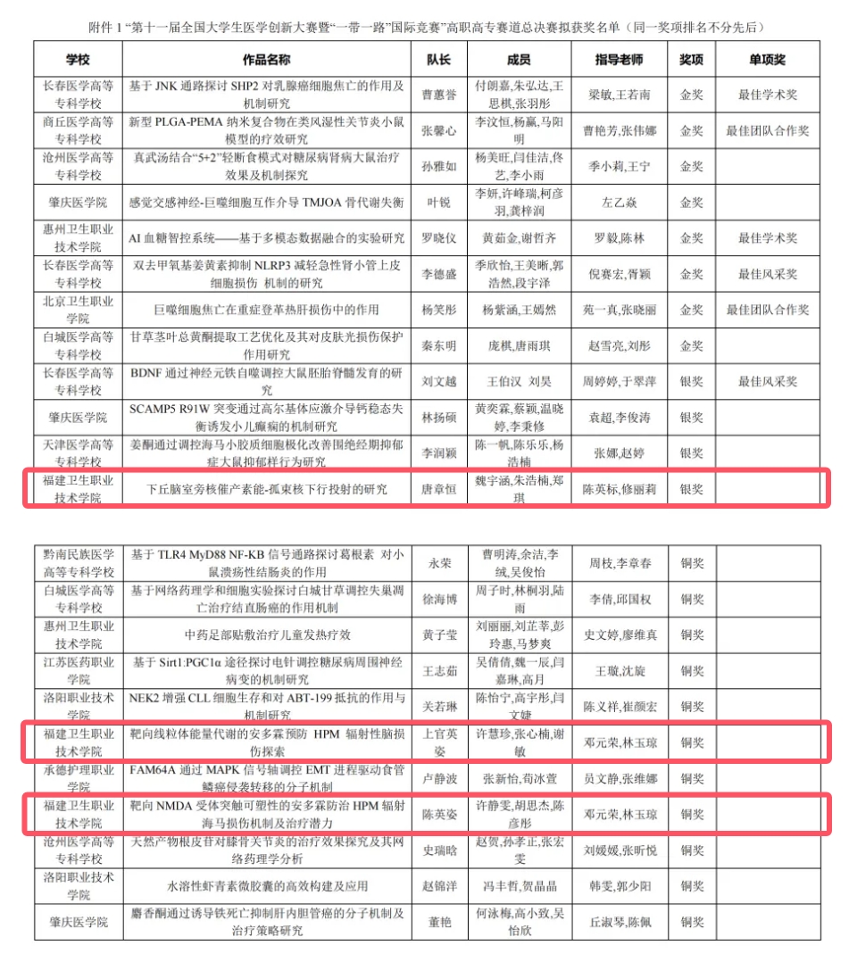 這是醫(yī)學(xué)院連續(xù)第三年組織學(xué)生參加該系列賽事并斬獲佳績,充分展現(xiàn)了學(xué)院持續(xù)推進(jìn)科學(xué)創(chuàng)新教育和實(shí)踐應(yīng)用培養(yǎng)的育人成效。在“雙高?!苯ㄔO(shè)收官之年,此次獲獎(jiǎng)既是學(xué)校學(xué)科建設(shè)與人才培養(yǎng)的一項(xiàng)重要成果,也為高本貫通項(xiàng)目建設(shè)注入了強(qiáng)勁動(dòng)力。醫(yī)學(xué)院將以此為契機(jī),聚焦醫(yī)學(xué)人才培養(yǎng)核心目標(biāo),持續(xù)深化教育教學(xué)改革,不斷完善“以賽促學(xué)、以賽促教、以賽促創(chuàng)”,培養(yǎng)更多具備創(chuàng)新思維、實(shí)踐能力與人文素養(yǎng)的高素質(zhì)醫(yī)學(xué)人才。