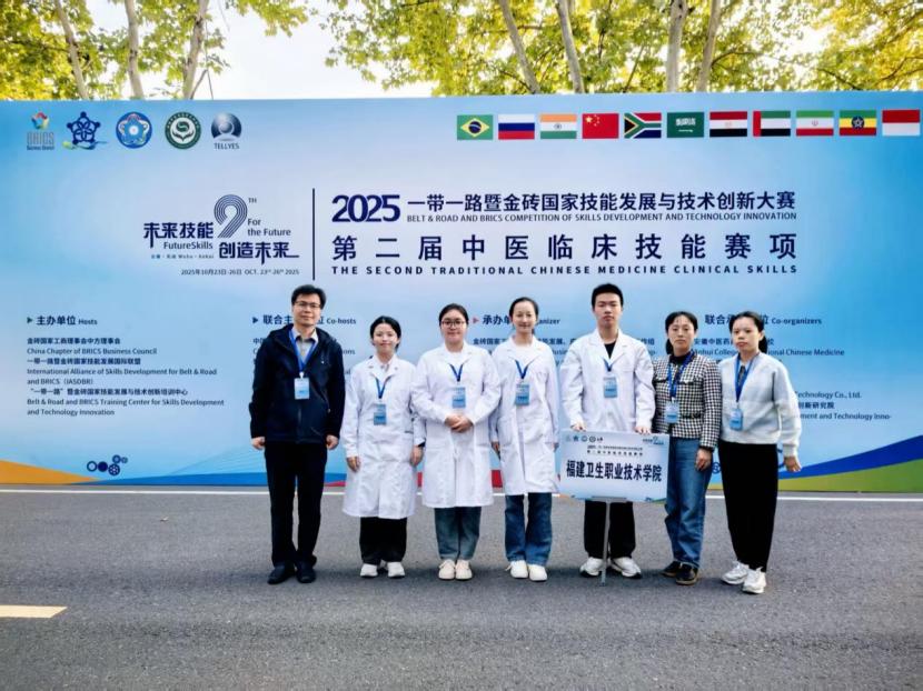 10月23日至26日,2025年“一帶一路”暨金磚國家技能發(fā)展與技術創(chuàng)新大賽第二屆中醫(yī)臨床技能賽項在安徽中醫(yī)藥高等??茖W校隆重舉行。本次大賽吸引了來自全國19個省份的49支代表隊同臺競技,匯聚了全國中醫(yī)藥職業(yè)教育領域的優(yōu)秀師生代表。經(jīng)過激烈角逐,我校醫(yī)學院代表隊陳凱、林宇婷、黃瀟、孫瑞靈四名選手憑借扎實的專業(yè)功底榮獲三等獎。