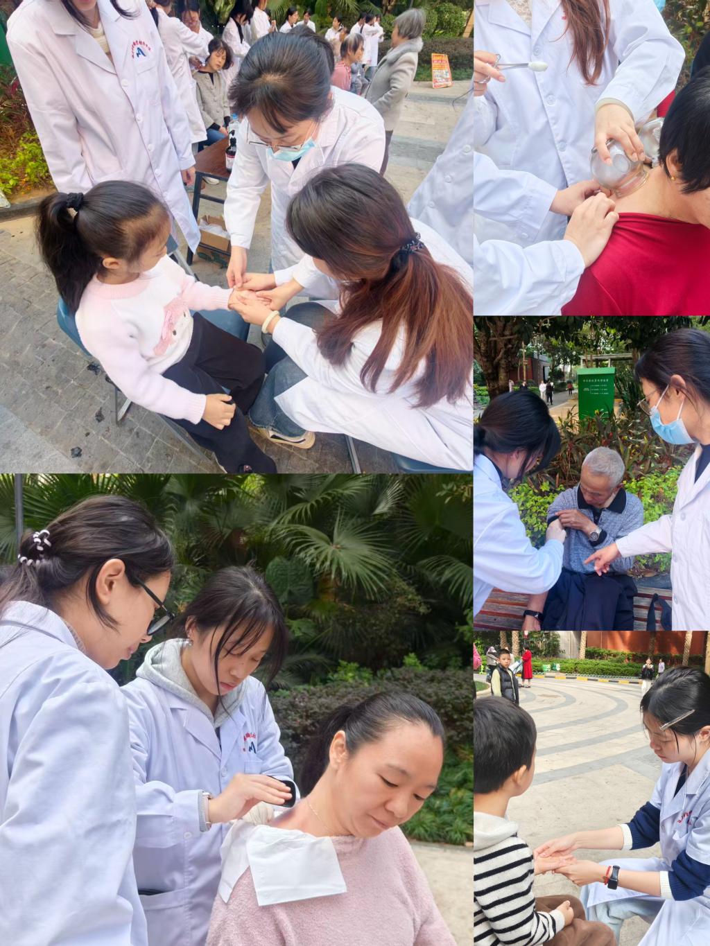 在黨員教師的指導(dǎo)下,“舒幼社”學(xué)生志愿者為社區(qū)居民提供了刮痧、拔罐、推拿(包括小兒推拿)等中醫(yī)特色服務(wù),幫助居民緩解身體不適,深受社區(qū)群眾歡迎。多位居民表示,通過(guò)親身體驗(yàn)中醫(yī)外治技術(shù),不僅感受到傳統(tǒng)醫(yī)學(xué)的獨(dú)特魅力,也增強(qiáng)了日常自我保健意識(shí)。