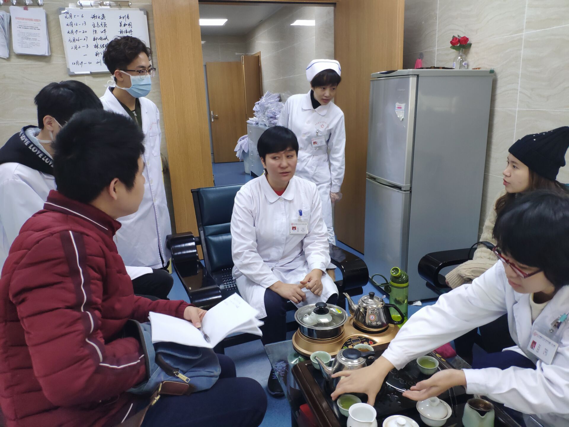 2019年1月9日-10日,臨床醫(yī)學系楊舟老師和輔導員黃惠龍老師到泉州人民醫(yī)院和聯(lián)勤保障部隊第909醫(yī)院看望實習生,了解實習生在醫(yī)院的實習情況,并與帶教醫(yī)生座談,聽取醫(yī)院方面對實習的意見和建議。提醒實習生要嚴格遵守醫(yī)院的考勤制度,在實習過程中多觀察醫(yī)生的規(guī)范操作,結(jié)合課本知識,理論聯(lián)系實際,學習操作技能,順利完成實習考核。提醒實習生注意安全,并做好校園招聘的準備,找到一個好工作。醫(yī)院方面對我系實習生給予肯定,并提出一些建設(shè)性的意見。學生表示在醫(yī)院學習到很多,會圓滿完成實習。