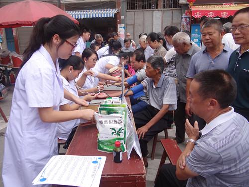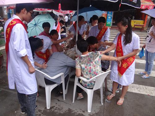 志愿者們身著工作服,早早就來到了社區(qū),熱情地為來診者測量血壓、推拿拔罐、口腔保健等,還耐心地對村民進(jìn)行健康宣傳,解答他們的疑問,幫助村民樹立良好的健康意識,改善其健康狀況。短短一上午就為近百名村民進(jìn)行了健康義診,同時還送上了防暑降溫藥品以及一些家庭常備藥品,以備村民們防暑應(yīng)急所用。