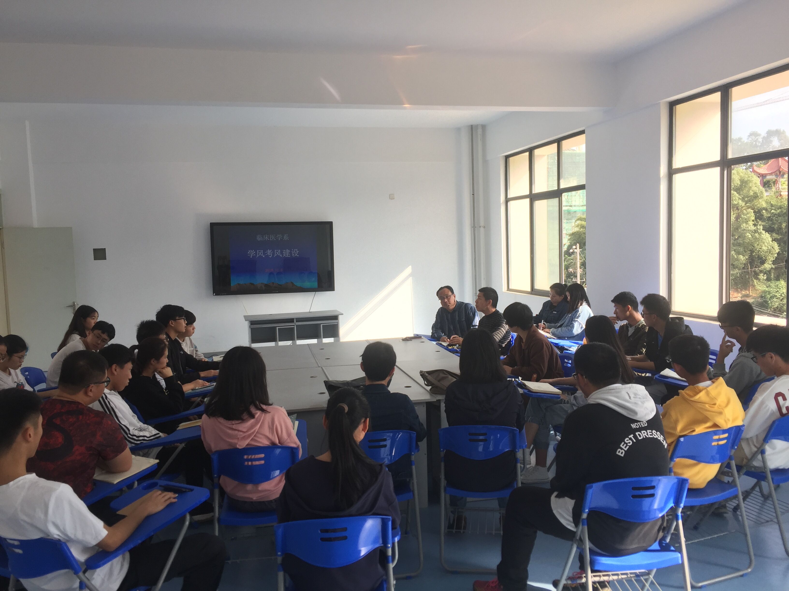為深入學(xué)習(xí)貫徹習(xí)近平新時(shí)代中國(guó)特色社會(huì)主義思想和黨的十九大精神,12月6日12:50臨床系在新實(shí)訓(xùn)樓409召開(kāi)了2018-2019學(xué)年第一學(xué)期期中座談會(huì)。參加此次會(huì)議的有學(xué)院督導(dǎo)室何旭春、唐青老師,臨床系郭禮堅(jiān)主任、林國(guó)威副主任、陳俊穎副書(shū)記、林浩副主任、蔡玲玲老師、學(xué)習(xí)部長(zhǎng)及在校各班學(xué)委。