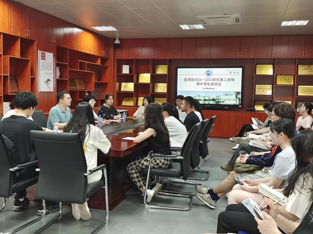 為提升教學(xué)質(zhì)量,促進(jìn)教風(fēng)、學(xué)風(fēng)建設(shè),加強(qiáng)教學(xué)信息反饋,及時(shí)了解教學(xué)過程中教與學(xué)的情況,醫(yī)學(xué)院于2023年4月18日中午在實(shí)訓(xùn)樓311會(huì)議室召開2022-2023學(xué)年第二學(xué)期期中座談會(huì)。參加此次會(huì)議的有學(xué)校質(zhì)量管理辦公室副主任李燕平、校督導(dǎo)唐青、醫(yī)學(xué)院學(xué)習(xí)部干事、21級(jí)和22級(jí)所有專業(yè)的各班學(xué)委代表,醫(yī)學(xué)院副院長(主持工作)鄧元榮、副院長劉能英共同參加了座談會(huì)。