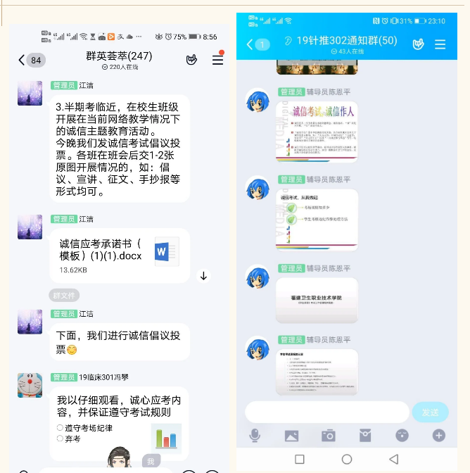 臨近期中,為營(yíng)造“誠(chéng)信考試光榮,違紀(jì)作弊可恥”的氛圍,激勵(lì)學(xué)生的榮譽(yù)感,促進(jìn)我系學(xué)生良好考風(fēng)的形成,培養(yǎng)學(xué)生自覺抵制作弊的行為。在疫情期間,本次的期中考試采用了線上考試,因此考風(fēng)考紀(jì)的教育更加重要。