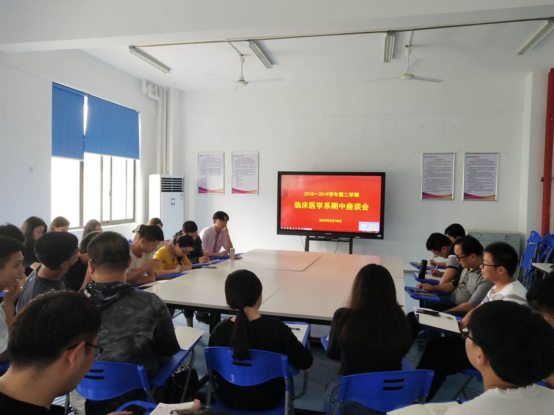 2019年5月16日,臨床醫(yī)學系在實訓樓401召開2018-2019學年第二學期期中座談會。督導室葉榕、陳順萍老師,臨床醫(yī)學系林國威副主任、林浩副主任、童輝燕老師,學習部長以及臨床、中醫(yī)、口腔、康復治療技術、針灸推拿專業(yè)學習委員作為學生代表參加了本次會議。