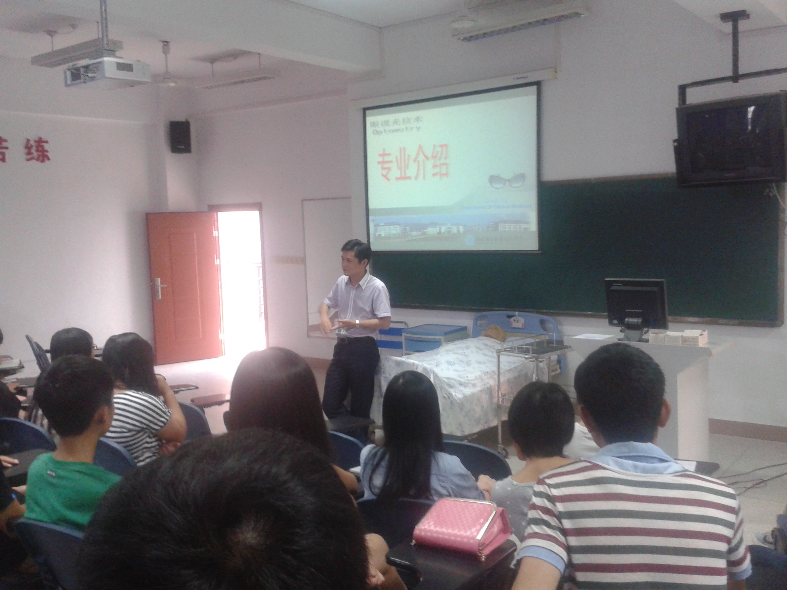 為了激發(fā)我系眼視光技術(shù)專業(yè)首屆新生的學習熱情,鞏固專業(yè)認識及幫助新生規(guī)劃學習生涯。10月8日晚,我系舉行了一場眼視光技術(shù)專業(yè)思想教育講座,由我系專業(yè)帶頭人夏江勝副主任醫(yī)師和王珊珊副教授主講,系輔導員林來元老師、沈惠萍老師參加了本次講座。