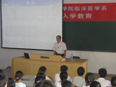 9月3日,在臨床醫(yī)學(xué)系的第二階梯教室,由臨床醫(yī)學(xué)系林志明常務(wù)副主任主持召開(kāi)了2008級(jí)新生入學(xué)教育。臨床醫(yī)學(xué)系主任魏真主任醫(yī)師從學(xué)校及學(xué)院概況、課程設(shè)計(jì)、學(xué)業(yè)要求等幾個(gè)方面的闡述讓新同學(xué)對(duì)自己所學(xué)的專業(yè)有了全面的認(rèn)識(shí)。