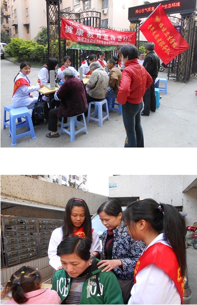 在臨床醫(yī)學(xué)系鄭向紅主任的帶領(lǐng)下,來自臨床醫(yī)學(xué)系、護(hù)理系、醫(yī)學(xué)技術(shù)系、藥學(xué)系的15名同學(xué)組成的學(xué)院專業(yè)技能應(yīng)用團(tuán)隊(duì),利用周末休息時(shí)間,來到福州市臺江區(qū)祥坂社區(qū),與社區(qū)居委會聯(lián)合為社區(qū)居民開展健康教育宣傳活動。志愿者們充分發(fā)揮自己的專業(yè)技能專長,免費(fèi)為社區(qū)居民進(jìn)行測量血壓以及實(shí)施保健按摩、推拿、拔罐等醫(yī)療保健服務(wù),同時(shí)向居民們宣傳普及健康生活常識,耐心回答各種健康方面的咨詢。