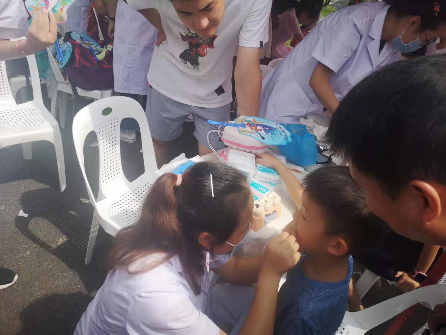 在活動開始之前,18級口腔專業(yè)學生精心策劃了本次科普活動內(nèi)容,并系統(tǒng)地學習和掌握口腔科普知識?;顒赢斕?,由林國威副主任帶隊,口腔教研室馬清璇老師、楊坦老師和童輝燕老師,以及8位18級口腔專業(yè)的學生隨行。我系師生們熱心地為參加活動的市民量血壓、口腔檢查、口腔宣教以及發(fā)放口腔健康宣傳單和牙線。他們詳細地科普了口腔健康的重要性、牙線的使用以及早發(fā)現(xiàn)、早診斷、早治療口腔疾患的預防策略。前來咨詢的多為兒童,大部分兒童口腔健康狀況較差:口腔清潔不到位、口內(nèi)多顆齲壞未處理、很多適宜做窩溝封閉的牙齒未行窩溝封閉等。