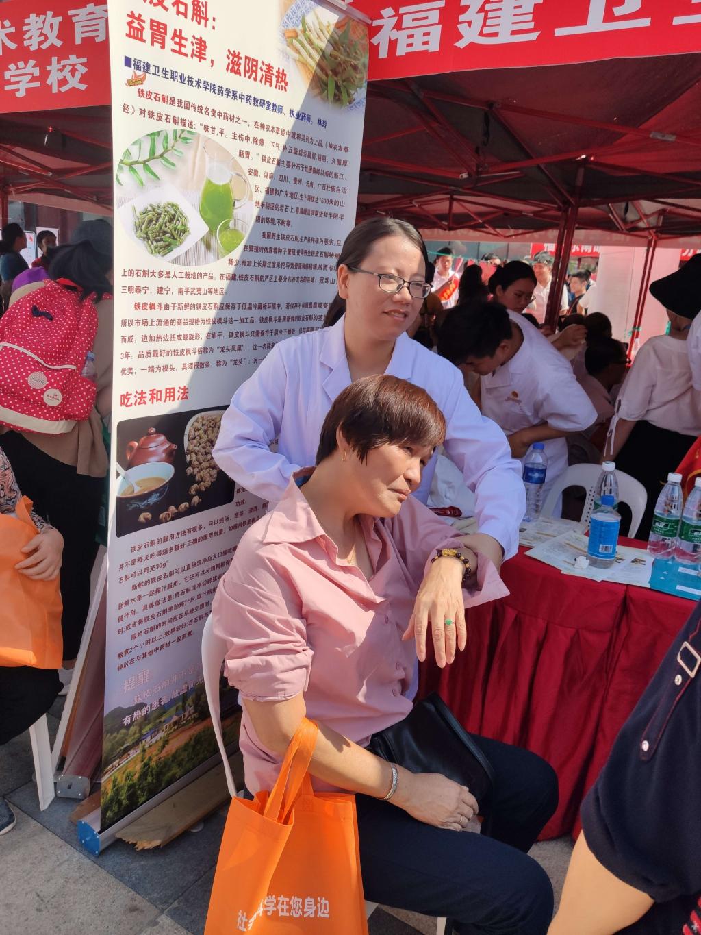 10月19日上午,臨床醫(yī)學(xué)系師生應(yīng)邀參加由福建省社會(huì)科學(xué)界聯(lián)合會(huì)舉辦的2019 年福建省社會(huì)科學(xué)普及宣傳周活動(dòng),旨在向廣大市民科普中醫(yī)、中藥文化,提高人們對(duì)中醫(yī)保健養(yǎng)生的認(rèn)識(shí)。本次活動(dòng)由臨床醫(yī)學(xué)系林國(guó)威副主任、蔡唐彥老師、沈書(shū)泓老師以及臨床醫(yī)學(xué)系、藥學(xué)系、護(hù)理系志愿者同學(xué)共同參與。