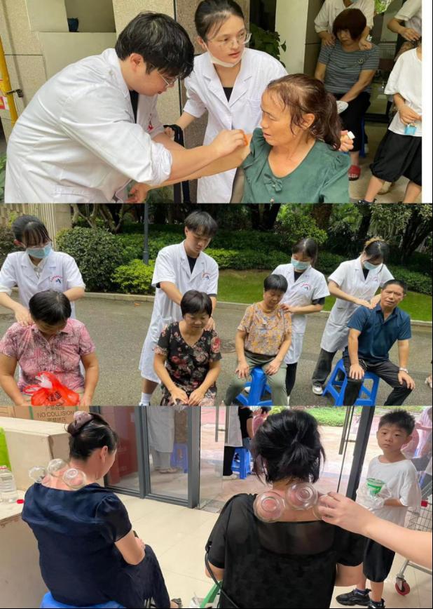活動現(xiàn)場,義診服務(wù)團隊認真地詢問每一位前來居民的病情,他們大多存在頸肩、腰背疼痛等問題,義診服務(wù)團隊熟練運用專業(yè)手法,為居民們開展了推拿、拔罐、刮痧等中醫(yī)適宜技術(shù),針對居民存在的問題做耐心詳細的解答,并分享了中醫(yī)養(yǎng)生知識及頸腰部病證的相關(guān)注意事項。