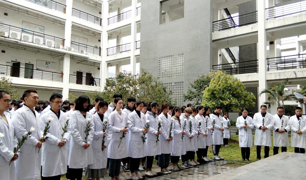 2019年4月3日,時(shí)值清明之際,臨床醫(yī)學(xué)系于基礎(chǔ)部一樓舉辦向大體老師致敬活動(dòng),系部領(lǐng)導(dǎo)、輔導(dǎo)員及學(xué)生代表近百人參加本次活動(dòng)。