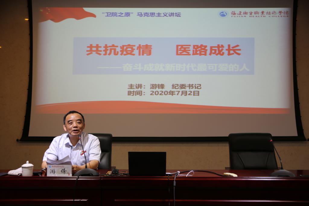 2020年7月2日下午,學(xué)院紀委書記游鋒為我系18級返校的同學(xué)作了一堂名為《共抗疫情、醫(yī)路成長——奮斗成就新時代最可愛的人》的形勢政策課。講座由系黨總支負責(zé)人陳俊穎主持。