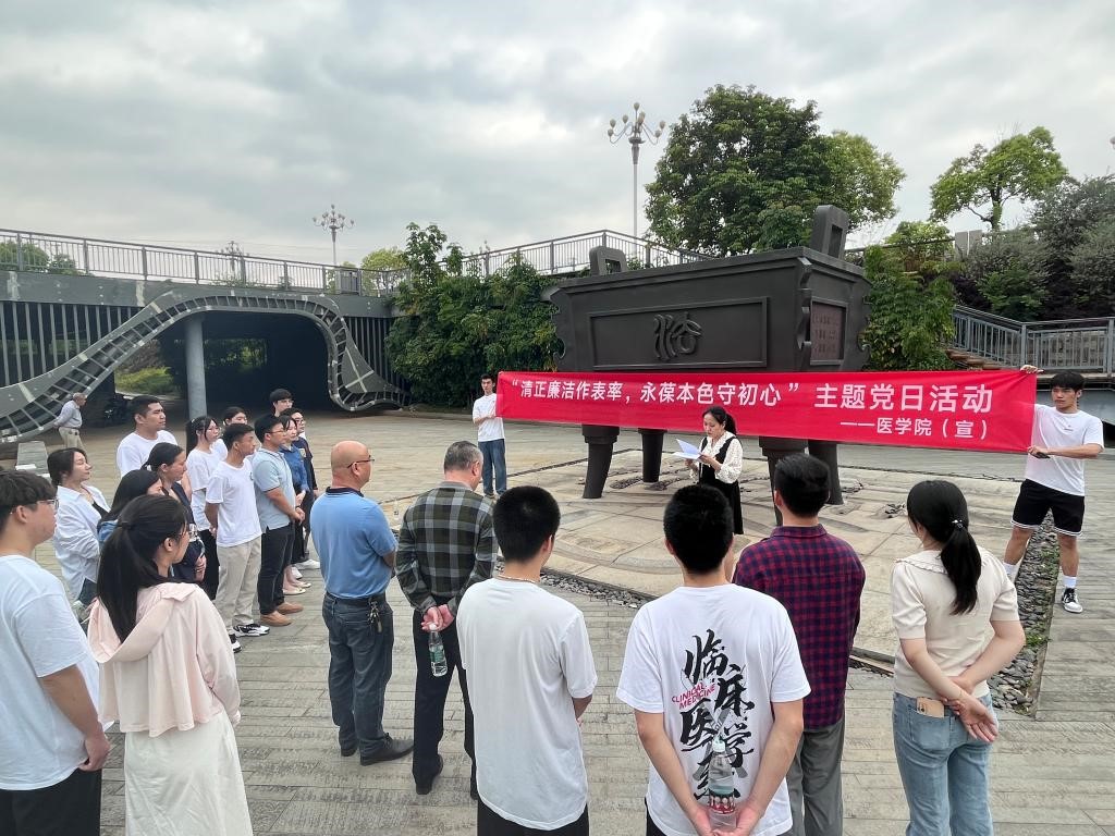 為深入學習宣傳貫徹黨的二十大精神,進一步加強黨風廉政建設,提升全體黨員干部廉潔自律意識,切實抓好黨風廉政教育,4月18日,醫(yī)學院黨總支赴閩侯法治廉政文化公園開展“清正廉潔作表率,永葆本色守初心”主題黨日活動。校關工委委員鄭力宏、醫(yī)學院全體師生黨員、入黨積極分子參加活動。