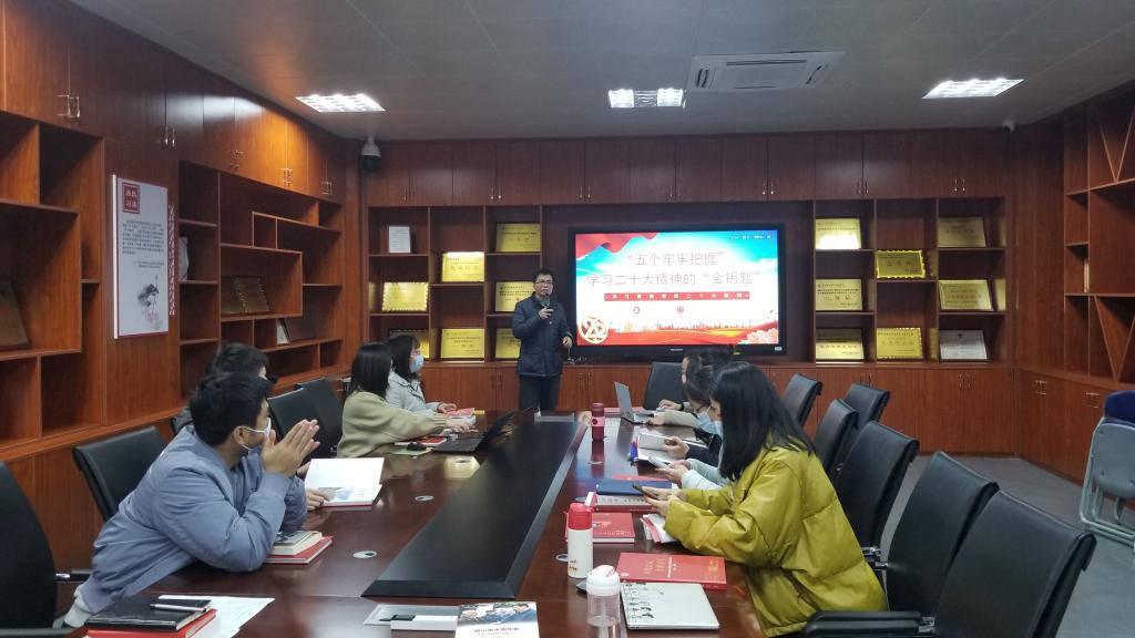 為深入學(xué)習(xí)宣傳貫徹黨的二十大精神,12月15日,醫(yī)學(xué)院教師第三黨支部書記陳銘向支部全體黨員師生宣講黨的二十大精神。陳銘結(jié)合黨的二十大報(bào)告原文,做了題為“‘五個(gè)牢牢把握’,學(xué)習(xí)黨的二十大精神的‘金鑰匙’”的宣講報(bào)告。陳銘從“牢牢把握過去5年工作和新時(shí)代10年偉大變革的重大意義,堅(jiān)定歷史自信,增強(qiáng)歷史自覺,把握歷史主動”“牢牢把握習(xí)近平新時(shí)代中國特色社會主義思想的世界觀和方法論,深刻領(lǐng)會黨的創(chuàng)新理論蘊(yùn)含的道理學(xué)理哲理”“牢牢把握以中國式現(xiàn)代化全面推進(jìn)中華民族偉大復(fù)興的使命任務(wù),明確中國共產(chǎn)黨要干什么的根本問題”“牢牢把握以偉大自我革命引領(lǐng)偉大社會革命的重要要求,確保黨永遠(yuǎn)不變質(zhì)、不變色、不變味”“牢牢把握團(tuán)結(jié)奮斗的時(shí)代要求,創(chuàng)造新的偉業(yè),開辟美好未來”5個(gè)方面對黨的二十大精神作了宣講和闡述,并結(jié)合學(xué)院工作,帶領(lǐng)全體黨員師生回顧初心、立足當(dāng)前、展望規(guī)劃未來。