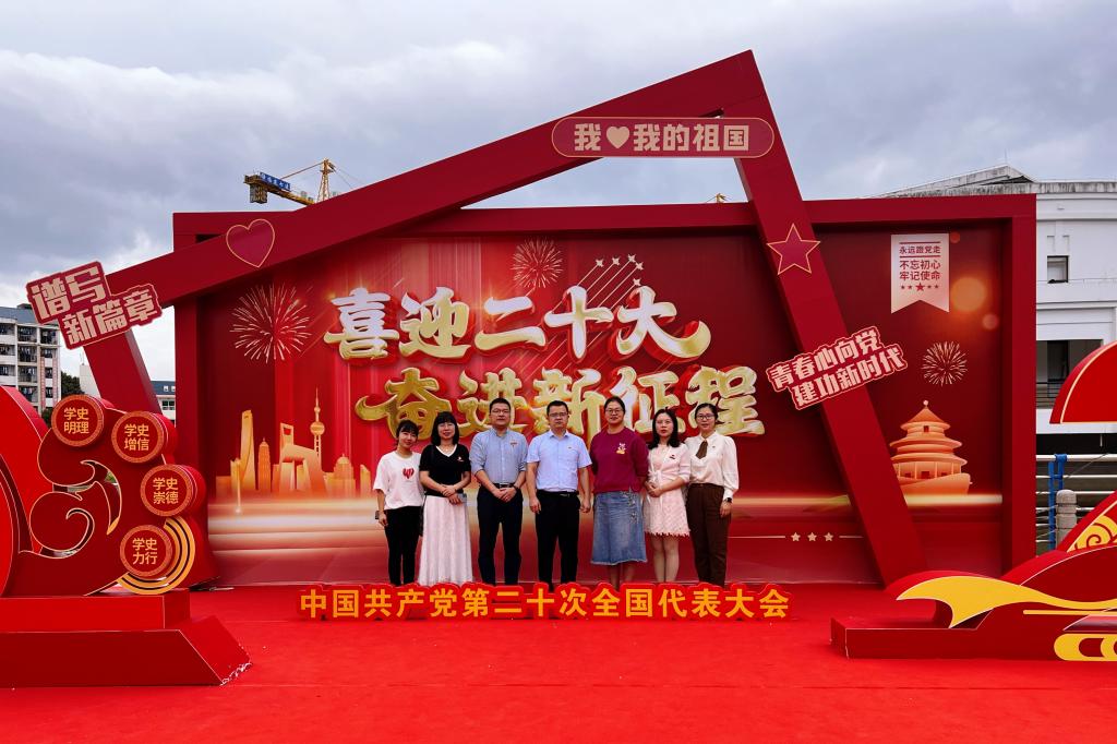 會后,在支部書記鄧元榮同志的帶領(lǐng)下,黨員同志在學(xué)校精心設(shè)置的主題陳展架前合影,記錄下這一心潮澎湃的激動(dòng)時(shí)刻。