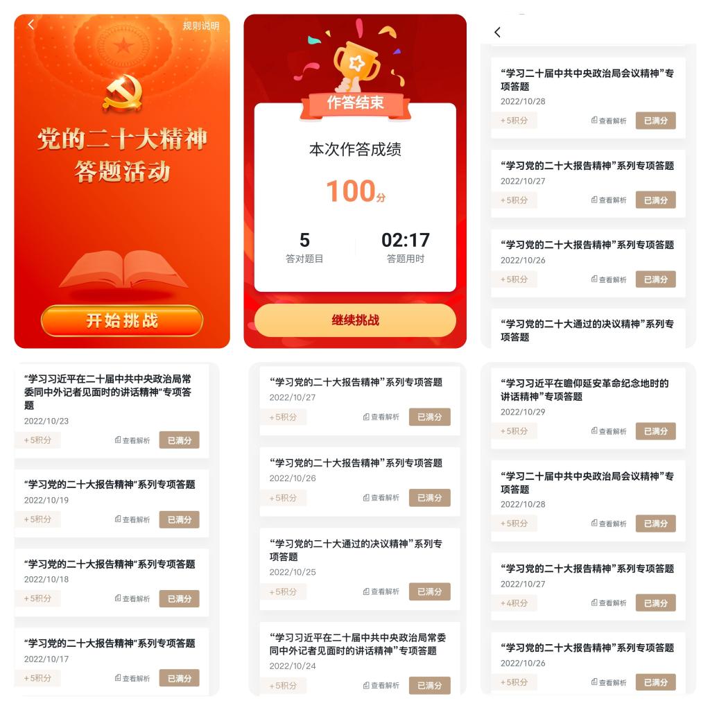 支部黨員同志積極參加學(xué)習(xí)強(qiáng)國(guó)黨的二十大精神專題答題活動(dòng),鞏固知識(shí),學(xué)習(xí)的時(shí)間、空間不受限,營(yíng)造良好的學(xué)習(xí)氛圍。